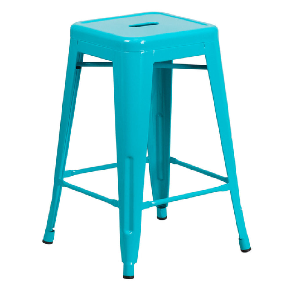 Flash Furniture ET-BT3503-24-CB-GG 16 Inch Bar Stool Armless Backless Galvanized Steel Crystal Blue Teal