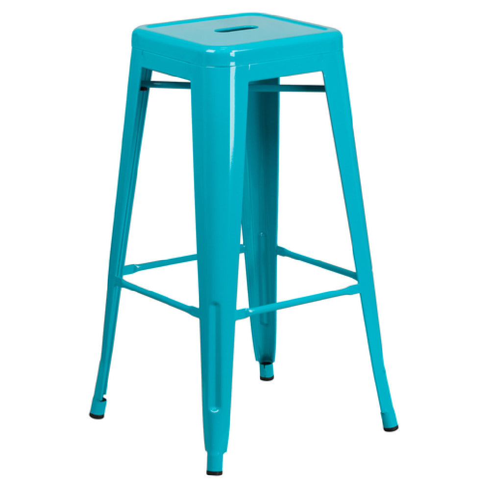 Flash Furniture ET-BT3503-30-CB-GG 17 Inch Backless Bar Stool Galvanized Steel Crystal Teal