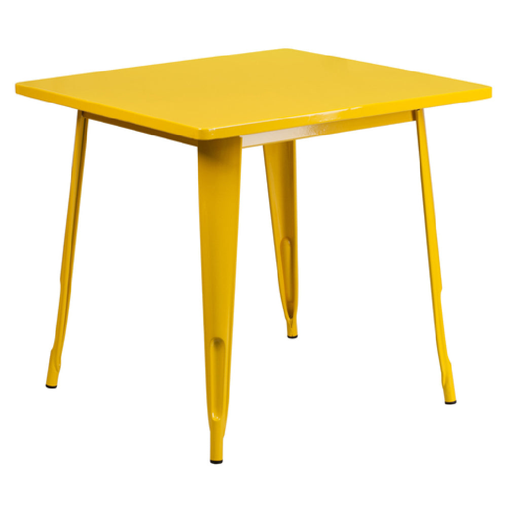 Flash Furniture, ET-CT002-1-YL-GG, Table, 31-1/2"W x 31-1/2"D x 29-1/2"H, dining height, square, smooth top, 1" thick edge, brace underneath top, galvanized steel, powder coat finish, rubber floor glides, designed for indoor/outdoor commercial and residential use, yellow (assembly required) (in stock items usually ship within 24 hours)