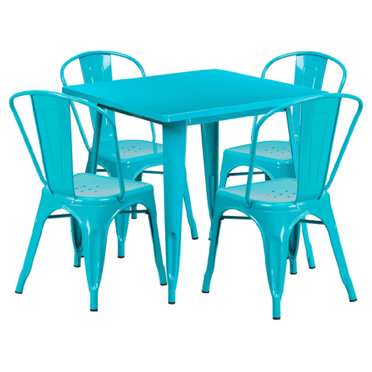 Flash Furniture ET-CT002-4-30-CB-GG 31-1/2 Inch Table and Chair Set Galvanized Steel Crystal Teal Finish - 1/Set