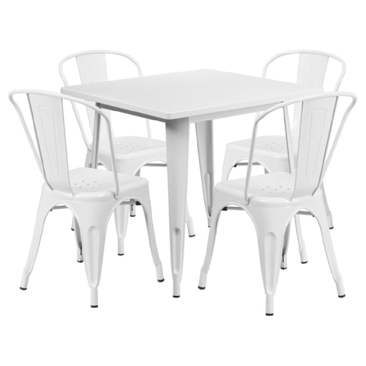 Flash Furniture ET-CT002-4-30-WH-GG 31-1/2 Inch Square Table and Chair Set Galvanized Steel White Powder Coat - 1/Set