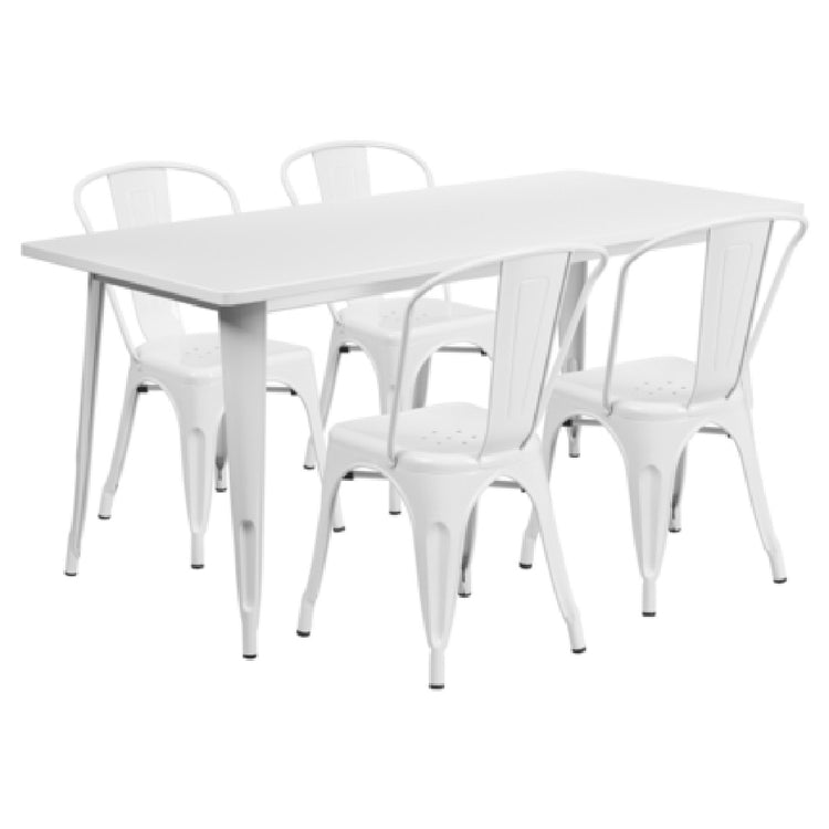 Flash Furniture ET-CT005-4-30-WH-GG 63 Inch Rectangular Table and Chair Set with 4 Chairs Galvanized Steel White - 1/Set