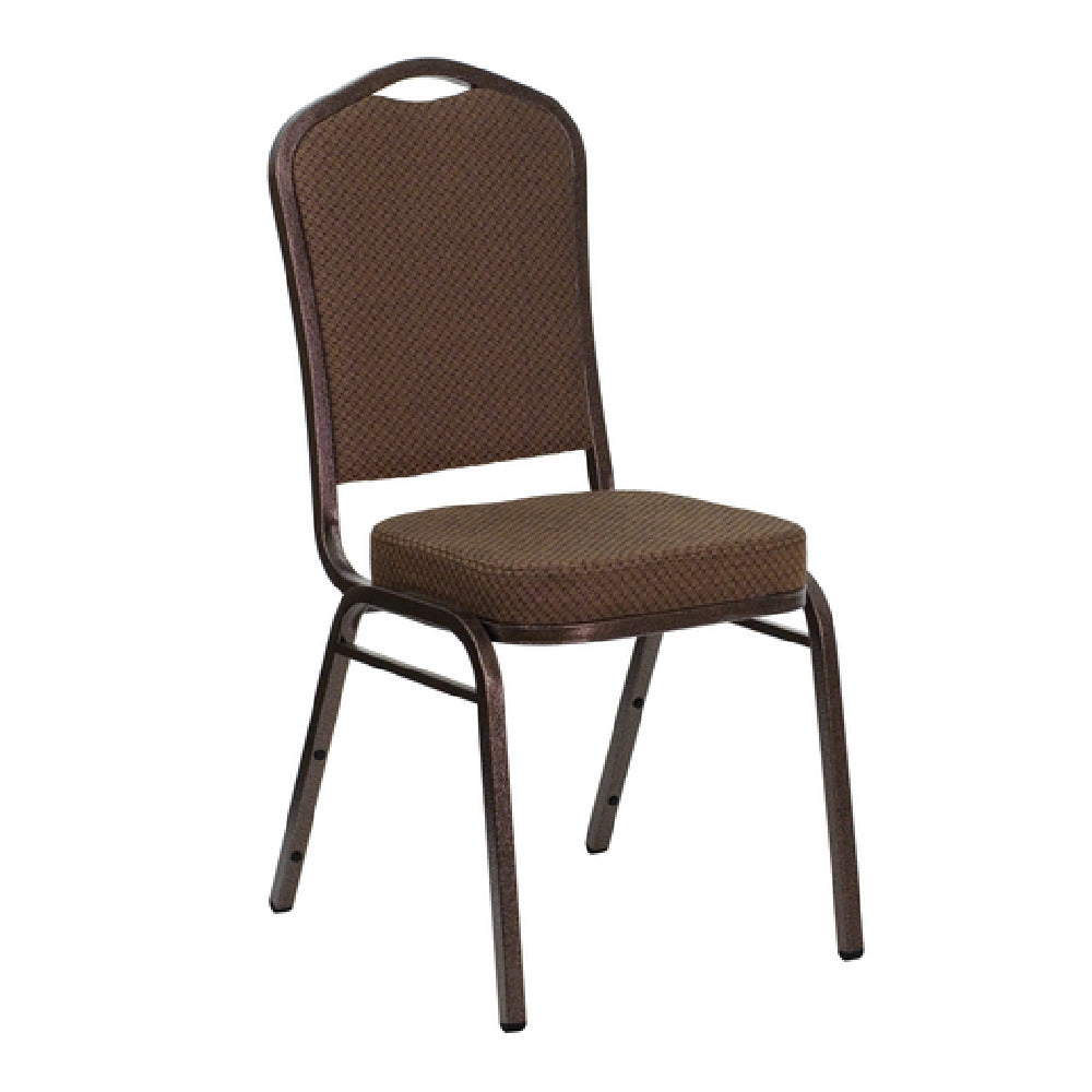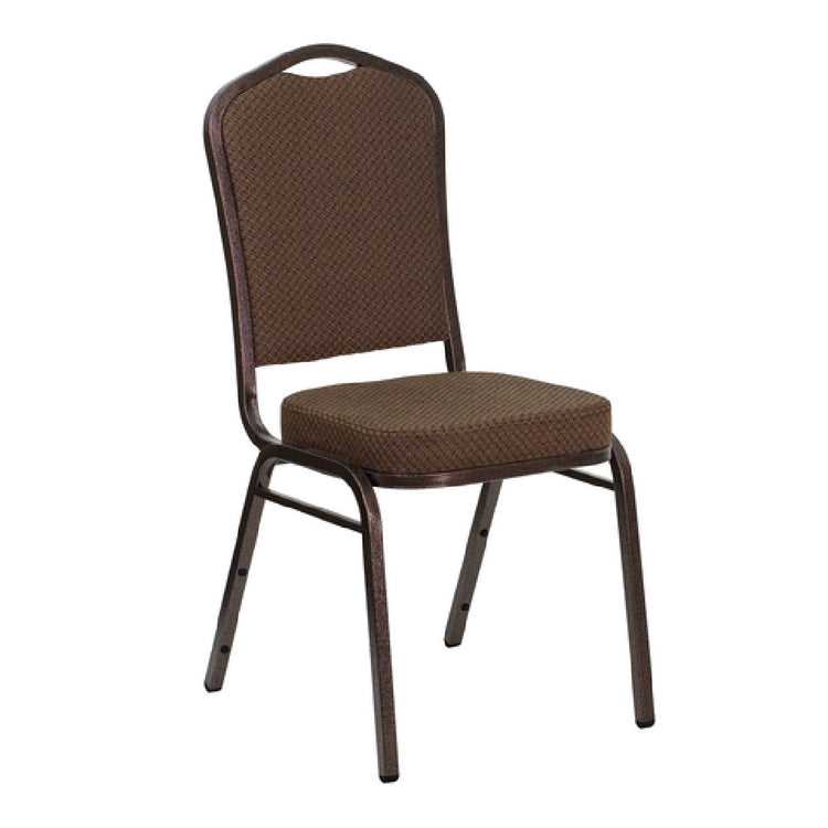 The Flash Furniture FD-C01-COPPER-008-T-02-GG Hercules Series Stacking Banquet Chair is a commercial-grade side chair designed for high-traffic event and hospitality environments. Constructed with a sturdy 16-gauge steel frame finished in copper vein powder coating, it features a crown-designed seamless back panel and a patterned fabric upholstered seat and back for durability and aesthetics. Capable of supporting up to 500 pounds, this chair incorporates a 2-1/2" thick CA117 fire-retardant foam seat, offering enhanced safety and comfort. Its stackability—up to 14 chairs—facilitates efficient storage and transport, making it suitable for banquet halls, conference centers, and catering services. Fully assembled and ready for immediate use, this lightweight yet robust chair combines technical precision with practical design for demanding commercial foodservice applications.