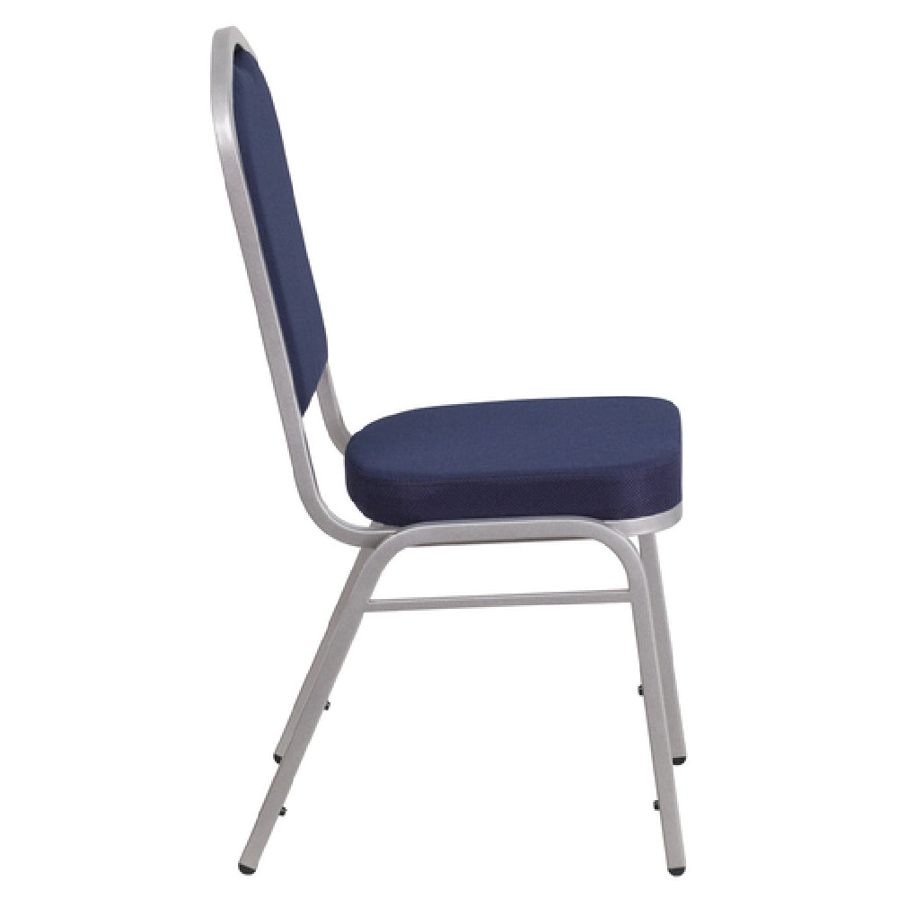 The Flash Furniture FD-C01-S-2-GG Hercules Series Stacking Banquet Chair is a commercial-grade seating solution designed for high-traffic settings such as banquet halls, conference centers, and institutional dining areas. This indoor side chair features a durable 16-gauge steel frame finished with a silver powder coating, supporting up to 500 pounds of static weight. Its crown design seamless back panel provides a refined look, while the fabric upholstered seat and back enhance comfort and aesthetics. Equipped with a 2-1/2" thick CA117 fire-retardant foam seat, it ensures safety standards are met for commercial environments. The stackable design, capable of up to 14 chairs high, facilitates efficient storage and quick setup for large events or versatile layouts. Fully assembled and in stock, this chair combines functional resilience with a sleek navy blue finish, making it ideal for versatile commercial foodservice applications requiring reliable, restaurant-ready seating.