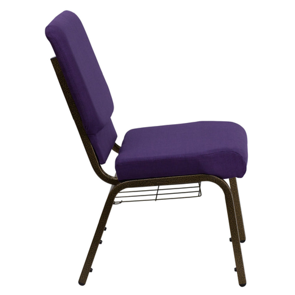 The Flash Furniture FD-CH02185-GV-ROY-BAS-GG Hercules Series Stacking Church Chair is a durable, commercial-grade seating solution designed for congregations and religious facilities. Crafted with a robust 16-gauge steel frame finished in gold vein, this chair supports up to 800 pounds. Its fabric upholstery features a 4-1/4" thick waterfall edge seat with CA117 fire-retardant foam, ensuring safety and comfort during extended use. Equipped with a book pouch on the back and a steel book rack with communion cup holder, it enhances functionality in worship settings. Assembly is required, with in-stock items typically shipping within 24 hours, positioning this model as a dependable choice for high-traffic religious environments requiring sturdy, space-efficient seating.