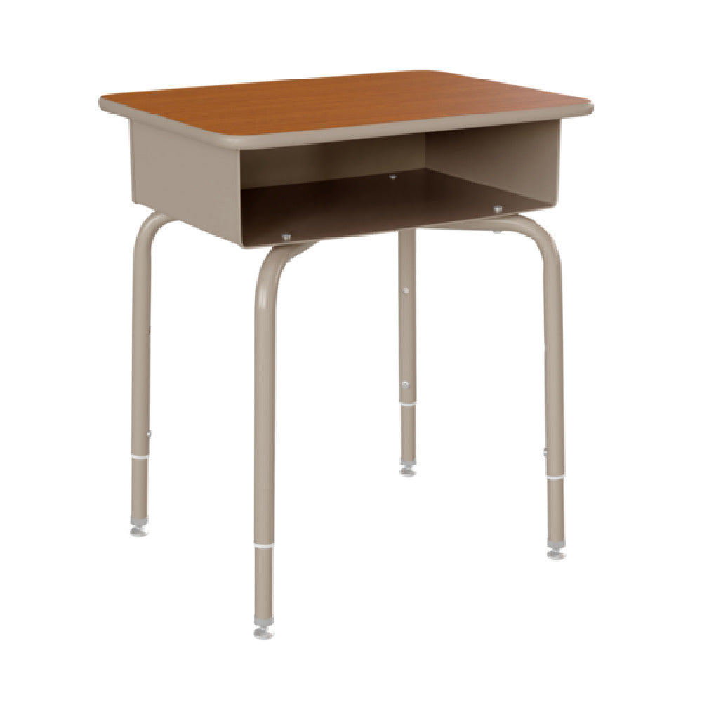 The Billie Student Desk offers precise height adjustability and durable construction, ideal for educational environments requiring flexible workstations. Its laminate top resists scratches, while the steel tubular frame ensures stability. The open front metal book box facilitates organized storage, and adjustable nylon glides allow for floor leveling. Designed for moderate workloads, this desktop seamlessly integrates into learning spaces, supporting ergonomic positioning and sustained productivity.