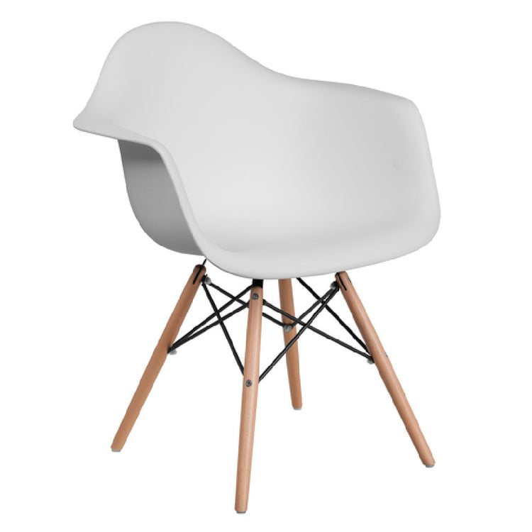 The Flash Furniture FH-132-DPP-WH-GG Alonza Series Armchair is a commercial-grade indoor seating solution engineered for contemporary settings. Crafted from durable polypropylene with a smooth white finish, this chair features a contour design with a waterfall seat to facilitate ergonomic comfort and effective circulation. Its curved arms and wood base reinforced with metal bracing deliver stability and longevity, making it suited for high-traffic environments such as hospitality lounges, waiting areas, and executive offices. The model number FH-132-DPP-WH-GG specifies a lightweight, user-friendly chair with precise dimensions and construction tailored for commercial use. This armchair combines functional design with robust materials to ensure reliable performance in professional interior applications.