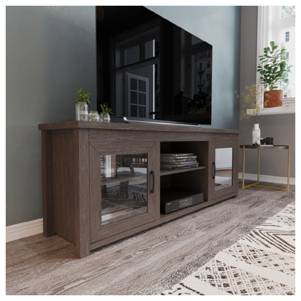 This TV stand's engineered wood frame supports up to three large displays, with dual full glass front doors providing easy access for maintenance. It includes three generous shelves capable of holding all necessary AV equipment. Designed for medium-volume usage, it ensures stability and durability with scratch-resistant finishes and reinforced construction. Its straightforward assembly minimizes setup time, making it suitable for professional environments requiring efficient workflow integration. Ideal for conference rooms, reception areas, or retail spaces, this unit accommodates a variety of AV setups while maintaining a premium aesthetic.