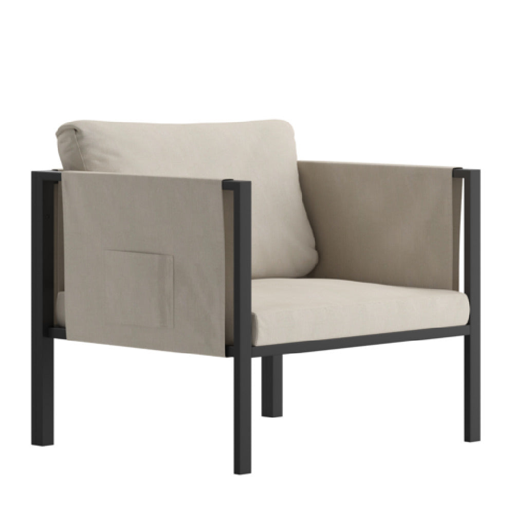 The Lea Patio Chair is crafted for demanding outdoor use in commercial foodservice settings, offering a robust galvanized steel frame with a black powder-coated finish for weather durability. Its fabric-backed cushions are designed for comfort and ease of maintenance, with dual storage pockets adding functional storage for towels or personal items. The chair's assembly process is straightforward, ensuring efficient setup in busy outdoor dining areas. Its 37 lbs weight enhances mobility for repositioning without compromising stability, supporting moderate customer throughput and frequent cleaning cycles.