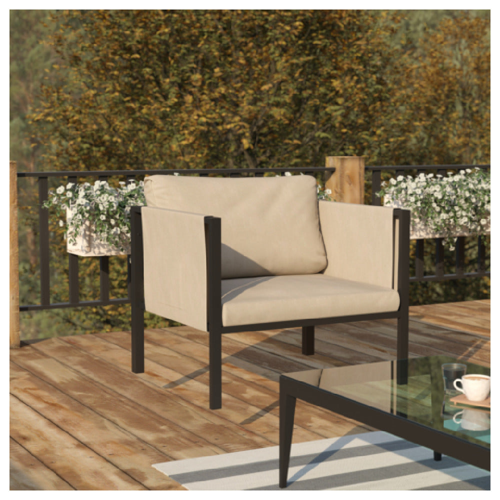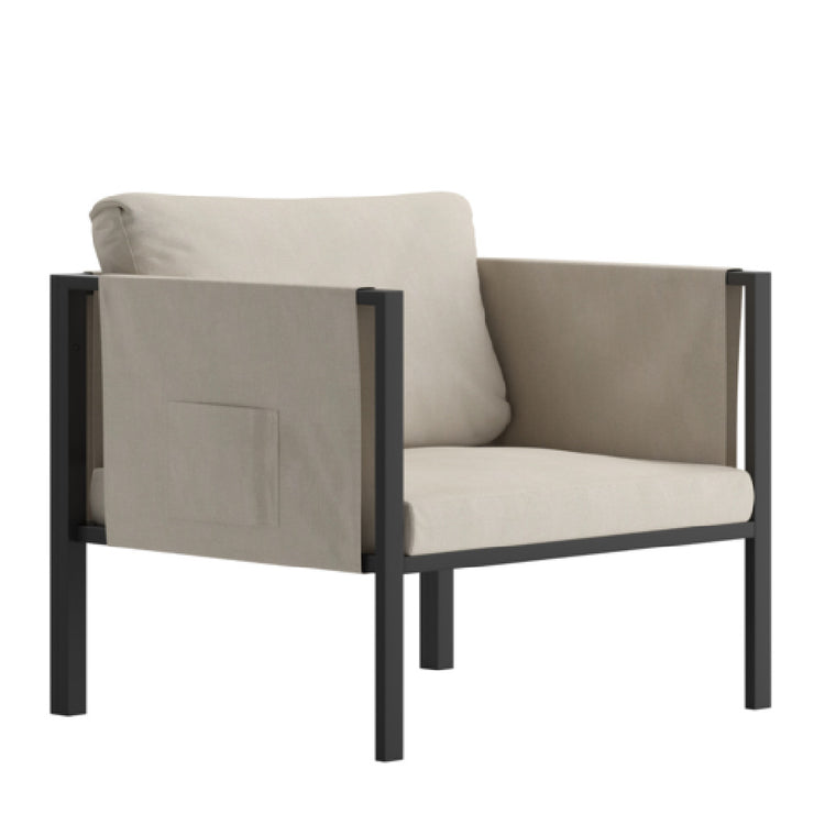 Flash Furniture GM-201108-1S-GY-GG 33 Inch Outdoor Lounge Chair Fabric Cushions Beige