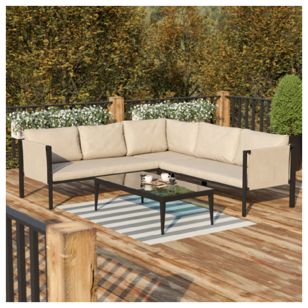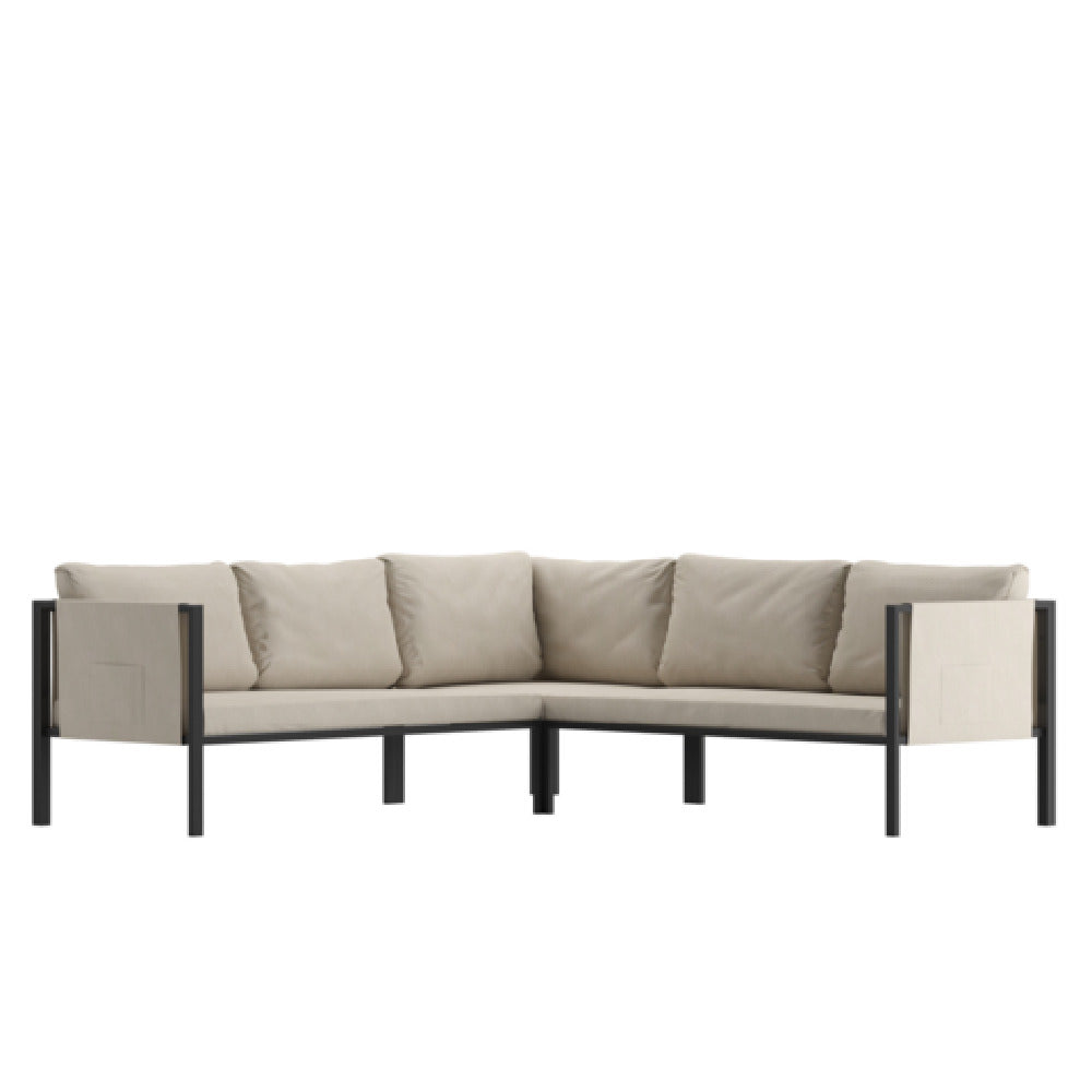 Flash Furniture, GM-201108-SEC-GY-GG, Lea Patio Sectional, 1300 lb. weight capacity, fabric back and seat cushions, black powder coated galvanized steel frame, dual storage pockets, beige (assembly required)