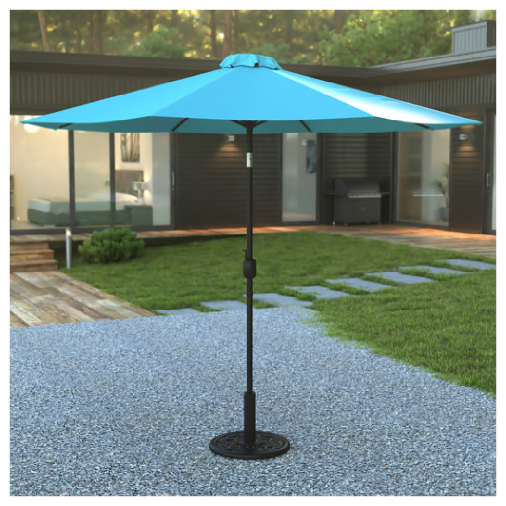 Flash Furniture GM-402003-UB19B-TL-GG 9 Foot Diameter Umbrella Teal Steel Ribs Concrete Base