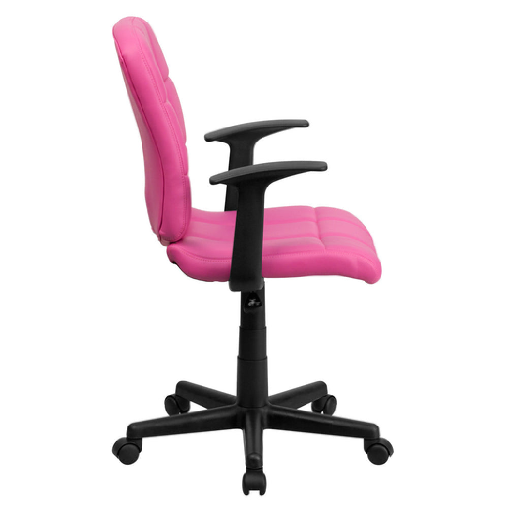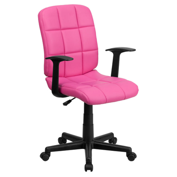 Flash Furniture, GO-1691-1-PINK-A-GG, Swivel Task Chair, 34" to 38-3/4" adjustable height, 250 lb. weight capacity, mid-back design, quilted design covering, contoured seat and back, vinyl upholstery, nylon arms, CA117 fire retardant foam, heavy duty black nylon base, dual wheel casters, pink (assembly required) (in stock items usually ship within 24 hours)