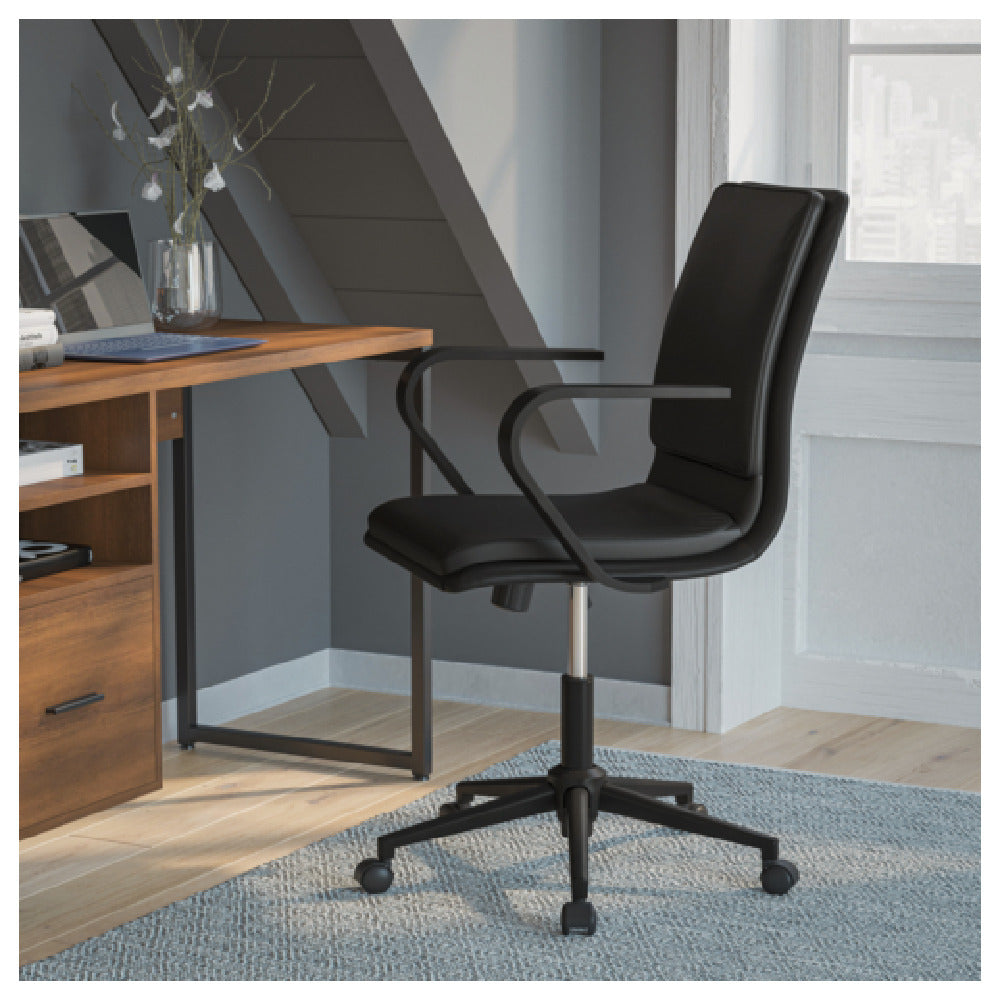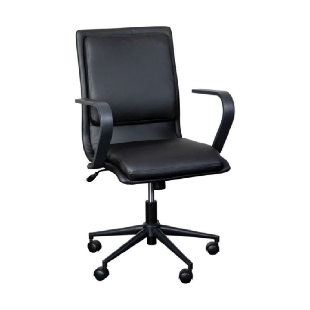 The Flash Furniture GO-21111B-BK-BK-GG office chair offers precise pneumatic seat height adjustment, enabling quick ergonomic customization for diverse user needs. Its high-quality LeatherSoft upholstery and solid wood seat ensure durability and ease of maintenance, suitable for high-traffic office environments. Designed with a mid-back structure and black base with dual wheel casters, it supports efficient workflow and mobility. The robust construction guarantees reliable daily use, accommodating up to 300 lb., while seamless height adjustment enhances comfort during prolonged periods. Its ergonomic features and sturdy build make it ideal for professional office settings requiring versatile seating solutions.