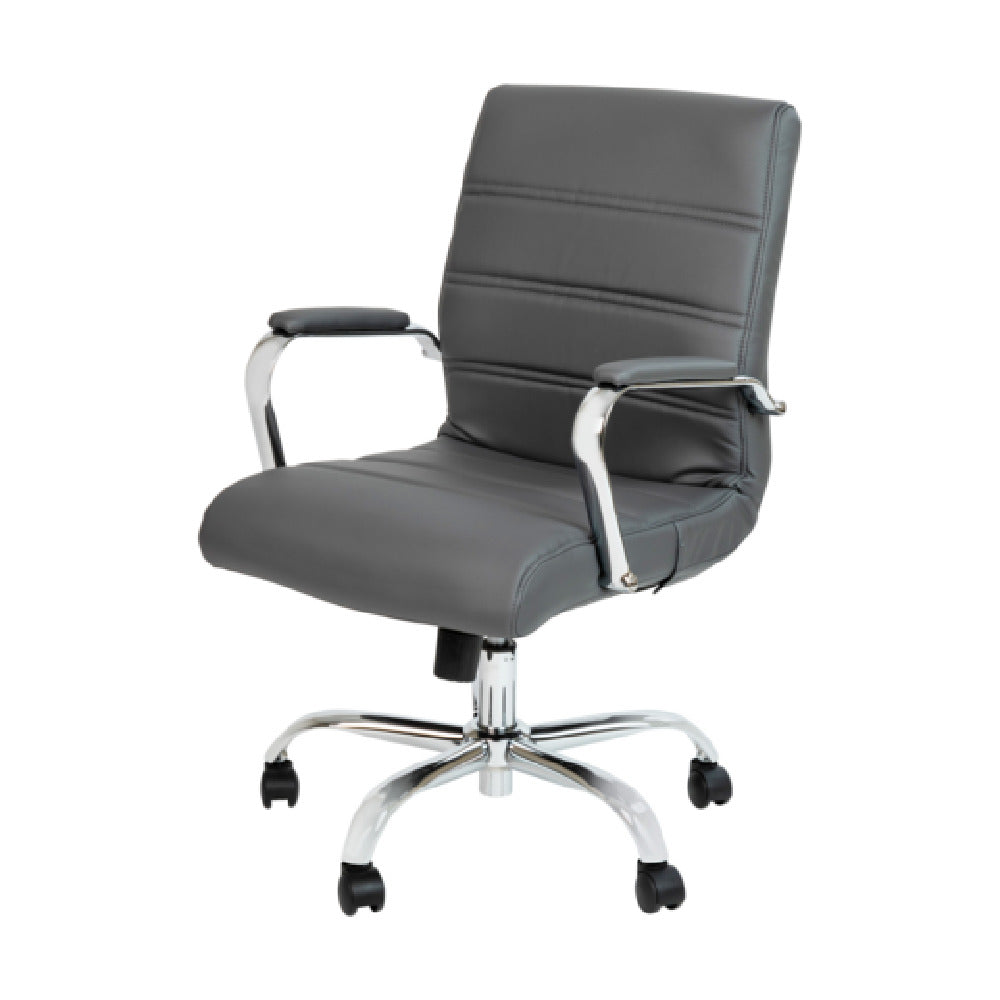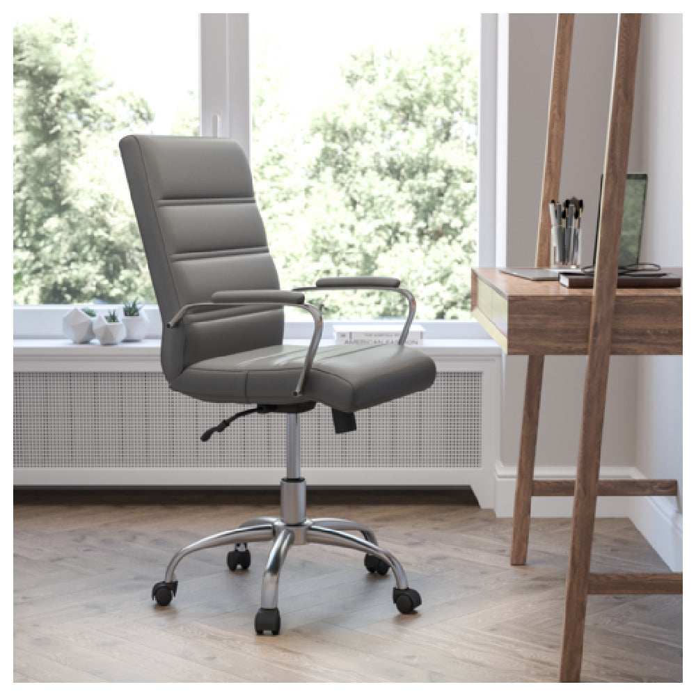 Designed for moderate office workflows, the Flash Furniture GO-2286M-GR-GG combines ergonomic support with high durability, ideal for executive and administrative environments requiring reliable swivel seating. Its adjustable height, premium upholstery, and casters support efficient, long-duration work and seamless mobility in busy professional spaces.