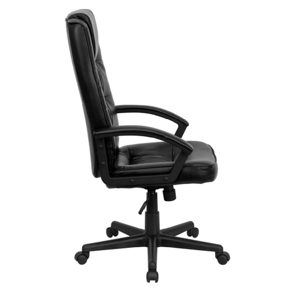 Compared to similar executive chairs, the Flash Furniture GO-7102-GG stands out with its durable LeatherSoft upholstery, adjustable height functionality, and heavy-duty nylon base. Its thoughtful design and premium materials deliver long-lasting performance in busy office environments. This model provides ergonomic support while ensuring operational efficiency and comfort for professional settings.