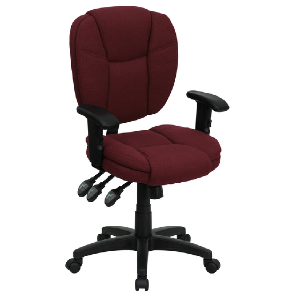 Flash Furniture GO-930F-BY-ARMS-GG 19 Inch Ergonomic Swivel Task Chair Burgundy Fabric