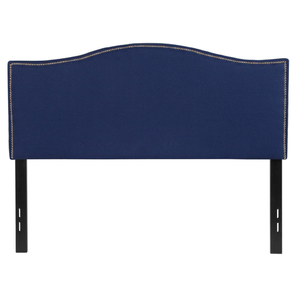 Flash Furniture, HG-HB1707-F-N-GG, Lexington Headboard, full size, transitional style, upholstered panel with arched top, brass nailhead trim, black metal stands with adjustable bed rail slots, fabric, navy (assembly required) (in stock usually ships within 24 hours)