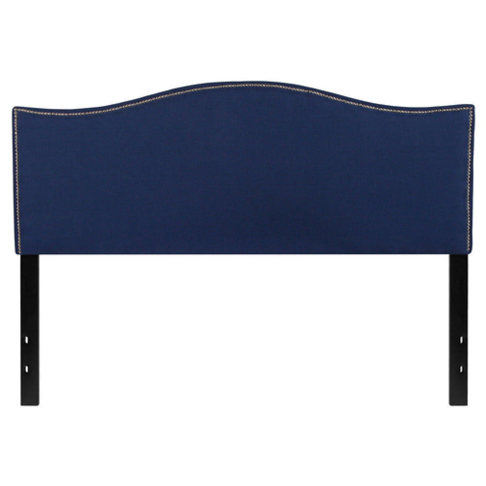 Flash Furniture HG-HB1707-Q-N-GG 61 Inch Upholstered Headboard Navy Brass Trim