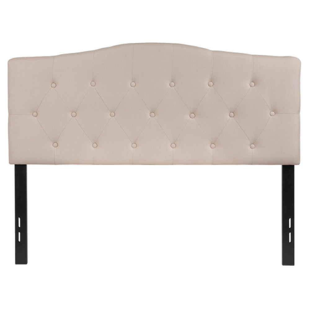 Flash Furniture, HG-HB1708-F-B-GG, Cambridge Headboard, full size, contemporary style, upholstered button tufted panel, diamond pattern stitching, black metal stands with adjustable bed rail slots, fabric, beige (assembly required) (in stock usually ships within 24 hours)