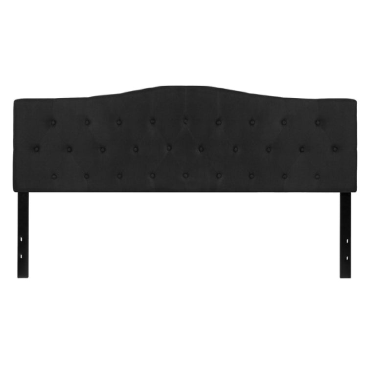The Flash Furniture Cambridge Headboard King Size Contemporary Style (Model HG-HB1708-K-BK-GG) is a commercial-grade upholstered headboard designed for luxury bedroom environments. Constructed with high-quality fabric and featuring a button tufted panel with diamond pattern stitching, it combines aesthetic appeal with durability. Equipped with black metal stands and adjustable bed rail slots, it offers seamless integration with king-size beds, ensuring stability and ease of installation. Its precise dimensions of 77.75 inches in width, 56.25 inches in height, and a 3-inch depth make it suitable for upscale hospitality, healthcare, and residential settings seeking a contemporary headboard solution that emphasizes both style and functionality.