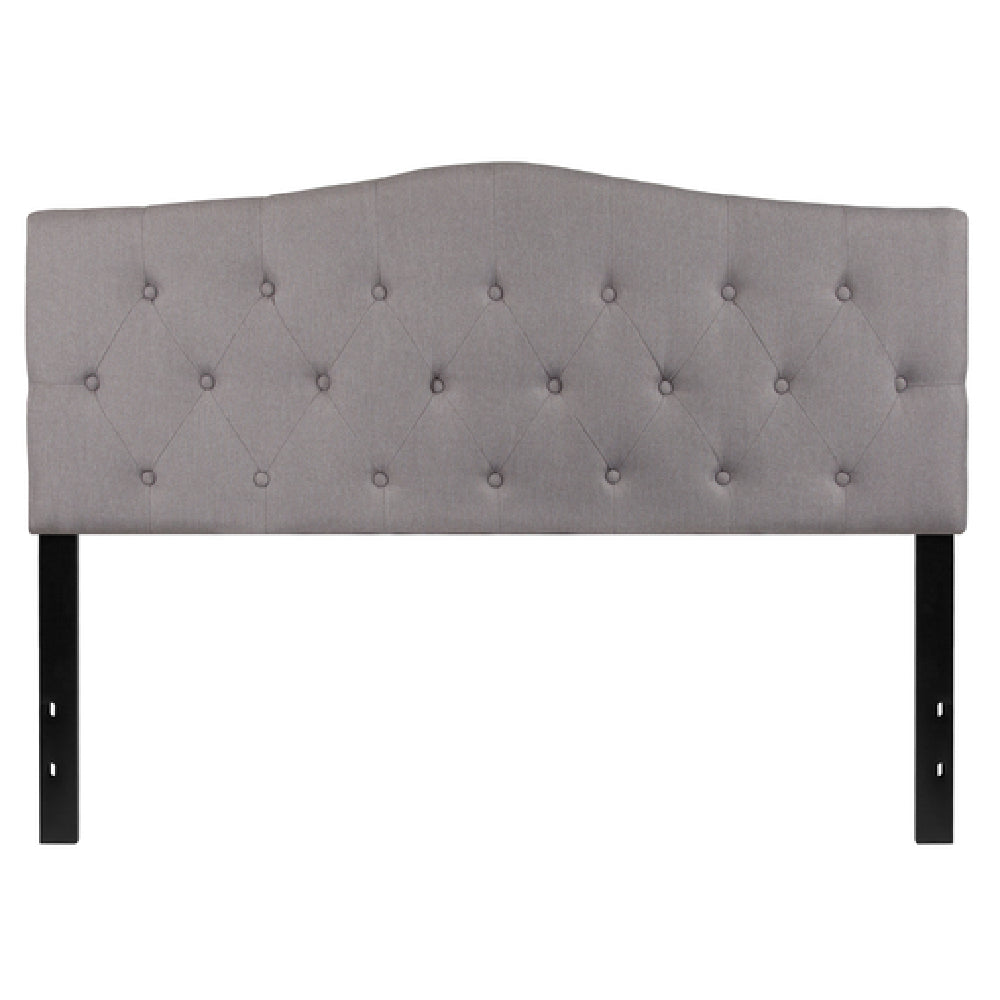 A commercial headboard is a structural component mounted at the head of a bed, designed to provide aesthetic appeal and functional support in hospitality or institutional settings. The Flash Furniture Cambridge Headboard HG-HB1708-Q-LG-GG combines fabric upholstery with synthetic diamond stitching, offering a contemporary look suited for hotels, inns, or upscale guest rooms. It is installed with adjustable metal stands for stability and adaptability across various bed frames, supporting everyday use in mid-volume room setups and enhancing overall room decor.
