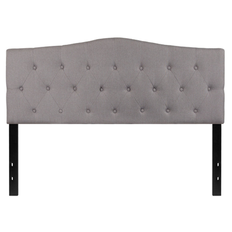 The Cambridge Headboard model HG-HB1708-Q-LG-GG features a fabric construction with a height of 55.25 inches and width of 78.5 inches, optimized for queen-sized beds. It weighs 36 lbs, facilitating straightforward handling and installation. The headboard is designed to support standard bed rail adjustments, with fabric upholstery that resists staining and simplifies cleaning. Its manufacturing from durable materials ensures longevity in both casual and commercial settings. Although designed primarily for standard residential use, its sturdy metal stands and fabric panel make it suitable for moderate-traffic hospitality environments requiring reliable, architecturally appealing headboard support.