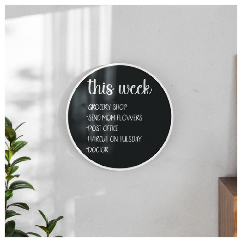 Professional-grade wall-mounted magnetic chalkboards like the HGWA-CHKCIRCLE24-WHTWSH-GG provide durable, easy-to-update signage for commercial kitchens and hospitality spaces, enabling efficient communication and presentation in restaurant environments. Designed with quality materials and precise dimensions, they support workflow integration in foodservice operations and high-traffic dining areas.