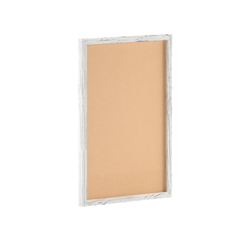 The Camden Rustic Wall Mount Cork Board offers a 20" x 30" surface with a whitewashed finish, ideal for high-volume wall display needs in commercial foodservice or hospitality environments. Its wooden push pins facilitate quick note placement, while the rustic aesthetic enhances ambiance. Designed for ease of mounting, it supports frequent updates and maintains visual clarity with minimal maintenance. The sturdy cork composition withstands repeated pin insertions, making it suitable for busy kitchen or dining areas, and integrates seamlessly into workflow zones requiring constant communication updates.