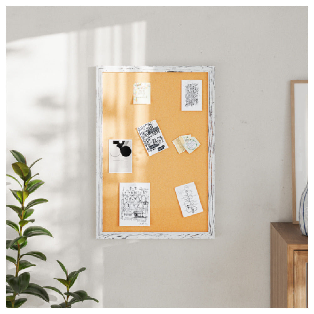 Flash Furniture HGWA-CK-20X30-WHTWSH-GG 20 Inch Whitewashed Cork Board with Wooden Push Pins