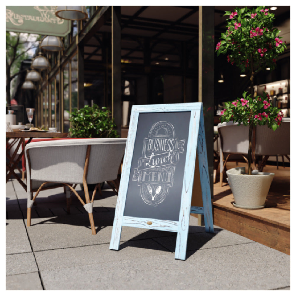 The Canterbury Magnetic Chalkboard Sign features a 20-inch by 40-inch porcelain steel writing surface with a solid pine wooden frame, weighing approximately 13.86 lbs. Its construction includes a 2-inch depth supportive frame, enabling stable display placement. The non-porous surface supports liquid chalk markers and traditional chalk, facilitating easy cleaning without surface damage. Designed for versatile indoor and outdoor use, the sign maintains performance within typical environmental conditions, with a focus on durability in commercial settings. The folding A-frame design underscores portability and space efficiency, while the lightweight profile supports frequent repositioning.