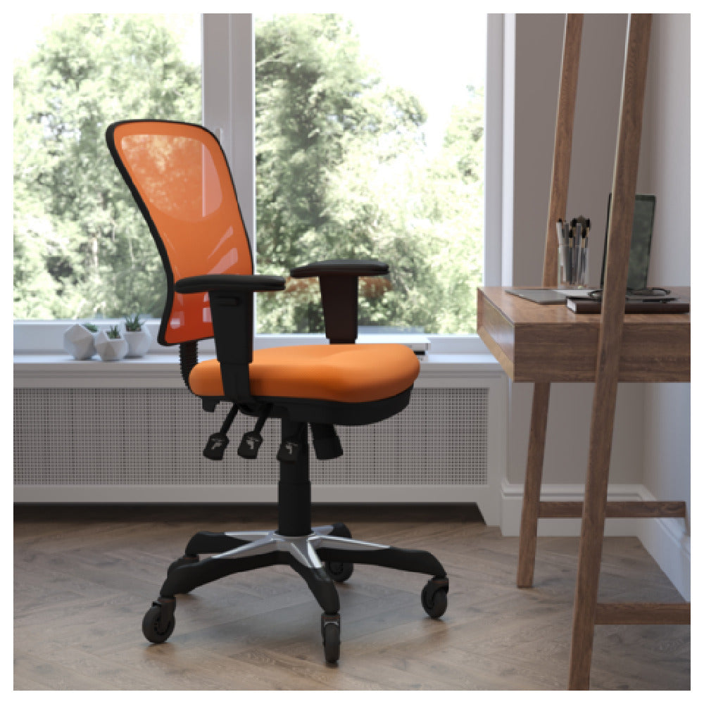Flash Furniture HL-0001-OR-RLB-GG 25 Inch Padded Mesh Swivel Task Chair with Arms