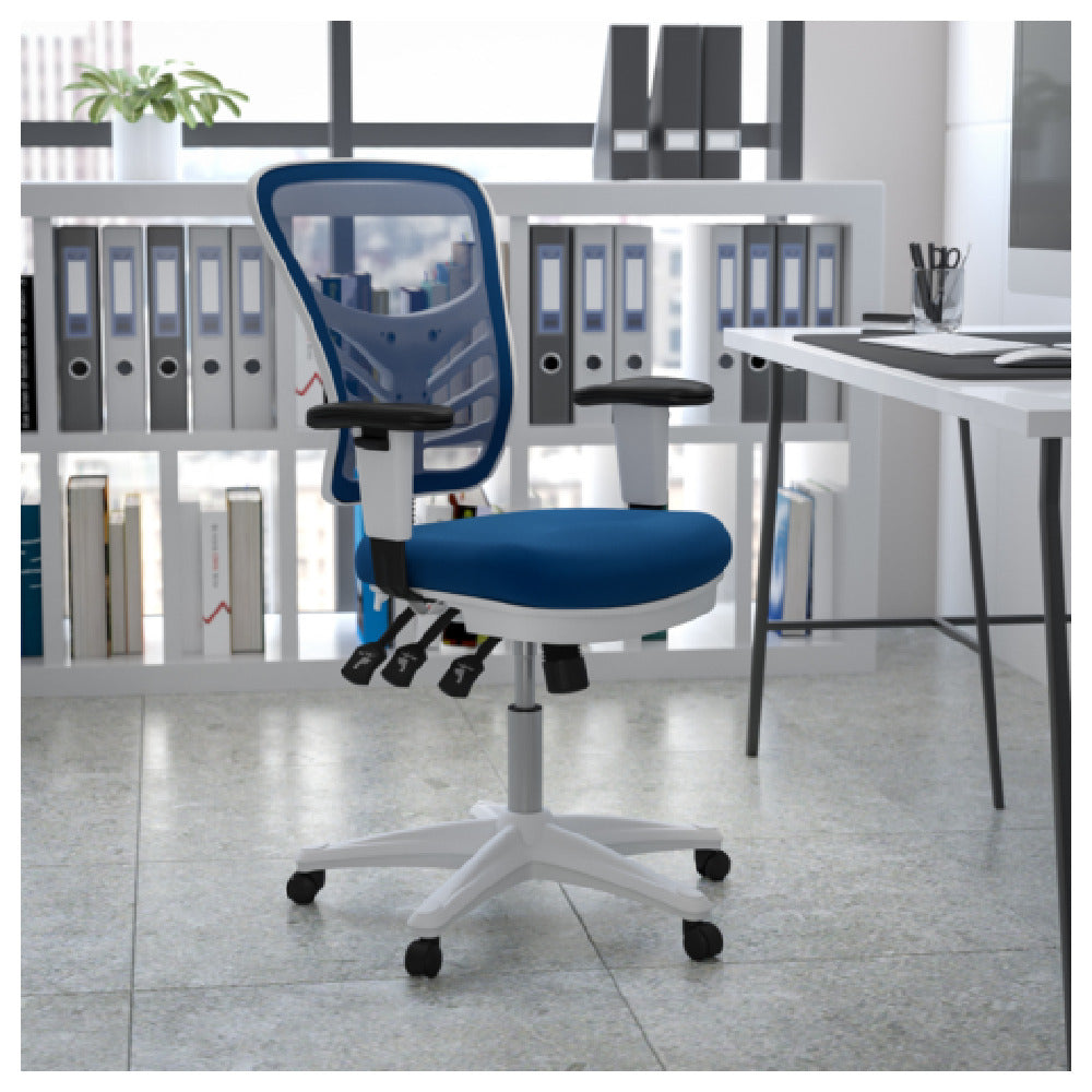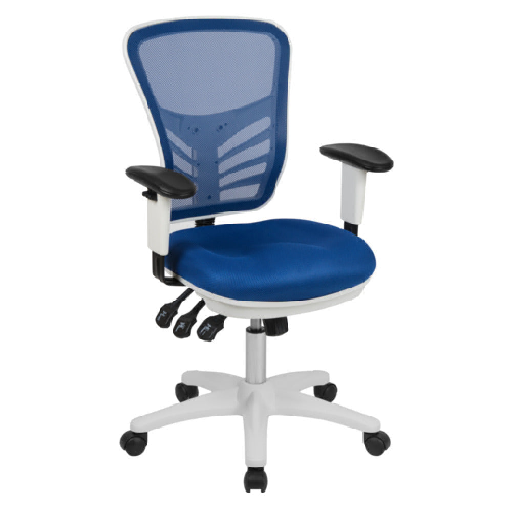 Flash Furniture HL-0001-WH-BLUE-GG 25 Inch Swivel Chair with Padded Lumbar Support Blue Mesh