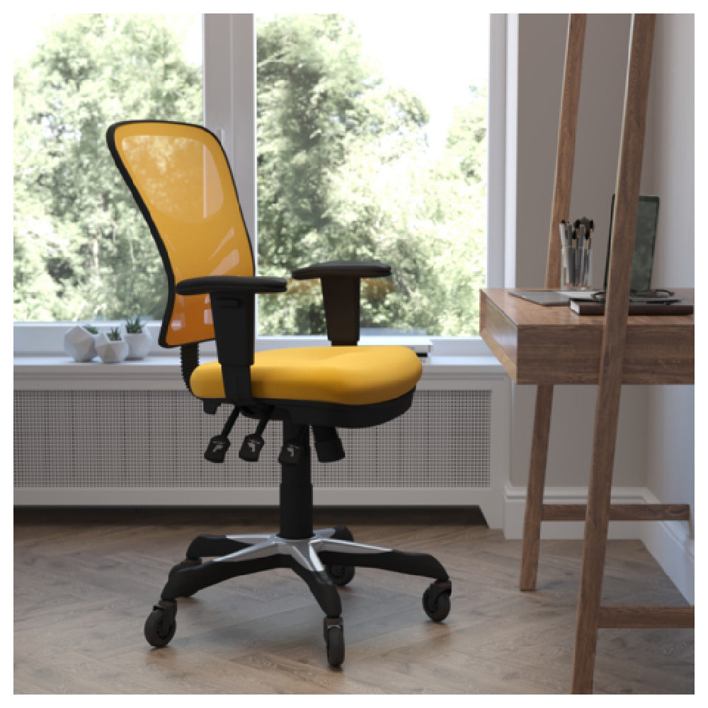Flash Furniture HL-0001-YEL-RLB-GG 25 Inch Adjustable Swivel Task Chair with Lumbar Support