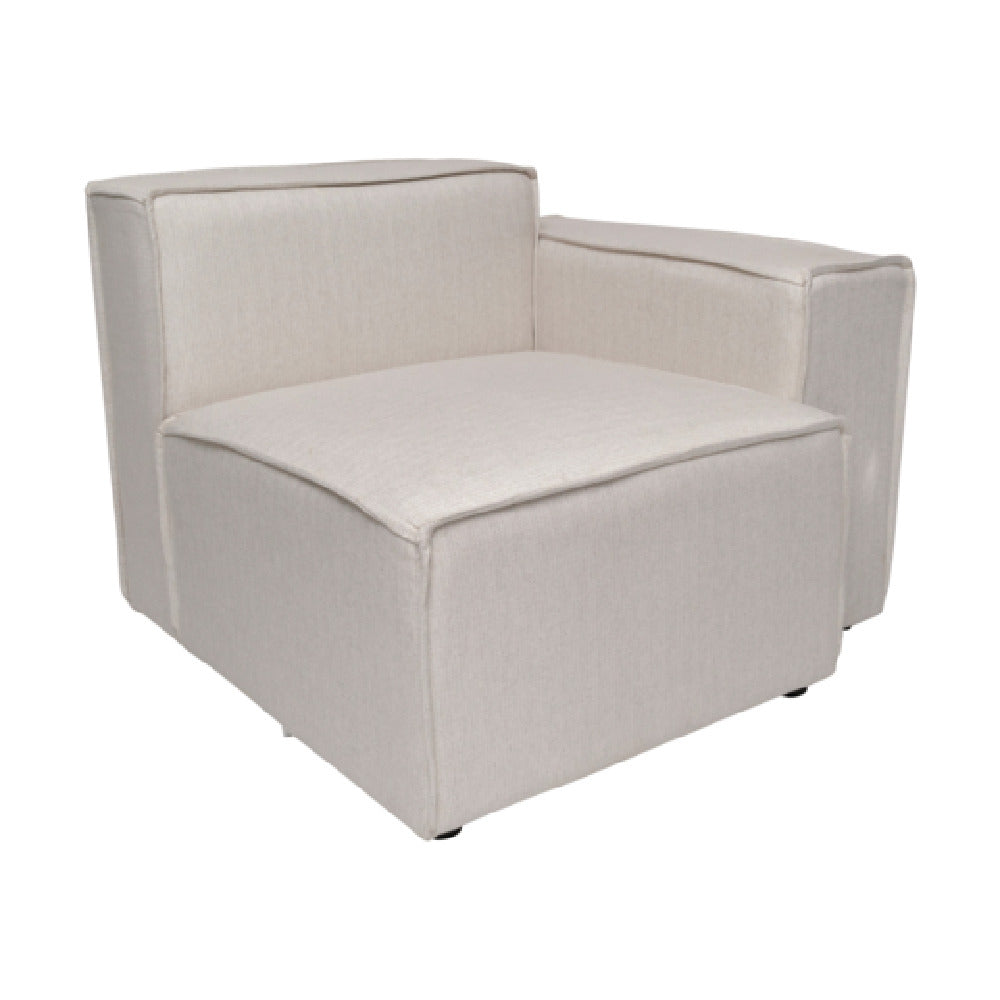 The Flash Furniture Bridgetown Luxury Modular Sectional Sofa Right Side With Arm Rest Only (Model IS-IT2231-RC-CRM-GG) is a commercial-grade indoor sofa designed for high-traffic lounge and hospitality environments. Constructed with a durable frame and upholstered in a cream fabric, this modular seating unit features a padded back and seat cushion, offering enhanced comfort and support. Its right-side configuration with an armrest makes it ideal for creating customizable lounge arrangements, facilitating efficient space utilization in cafes, waiting areas, or reception zones. The model incorporates precise dimensions of 37.75 inches in width, 36.75 inches in depth, and a height of 28 inches, with a weight of 69 lbs, making it suitable for versatile commercial applications requiring sturdy yet adaptable seating solutions.