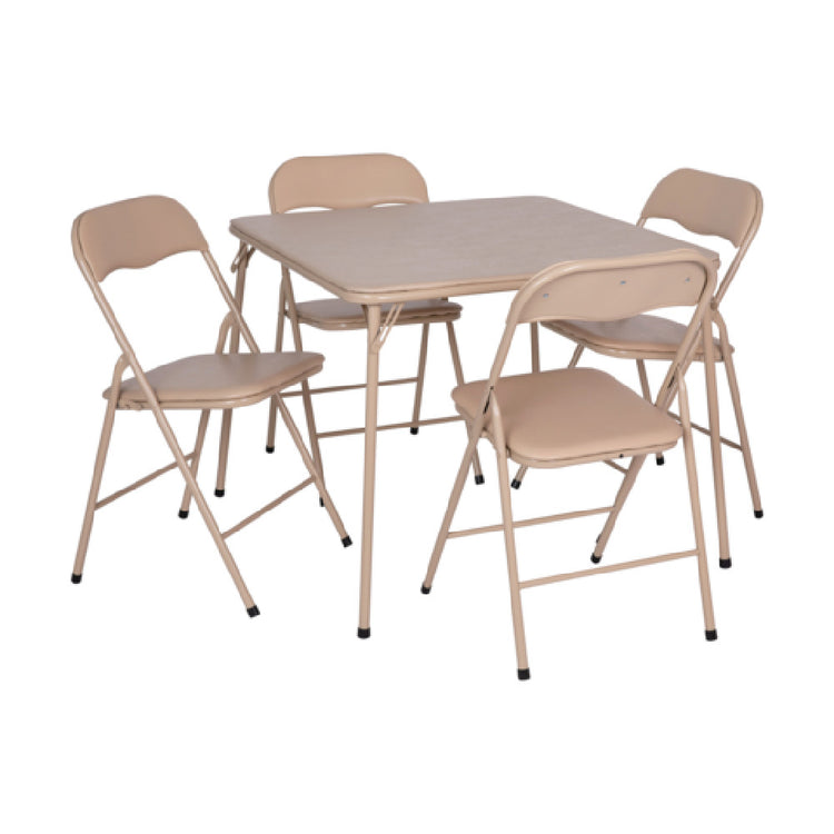 A commercial folding table and chair set is a versatile, space-efficient seating arrangement designed for foodservice environments requiring quick setup and breakdown. Featuring durable materials such as padded vinyl surfaces and powder-coated steel frames, these sets are suitable for indoor hospitality venues, cafes, and event spaces. The Flash Furniture JB-1-TAN-GG set includes a square folding table measuring 33-1/2 inches per side with a height of 27-3/4 inches, complemented by four foldable chairs supporting 300 pounds each. Ideal for temporary seating in moderate volume operations like catering, breakrooms, and banquet halls, it provides both durability and convenience.