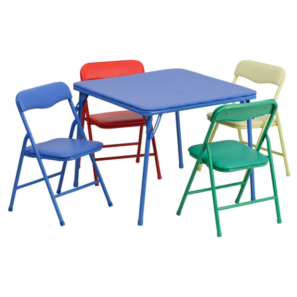 This commercial-grade set from Flash Furniture provides robust, space-saving furniture designed for educational, recreational, or event settings, supporting moderate throughput operations. Featuring a 24-inch square table and four lightweight, folding chairs, it is ideal for classroom activities, daycare, or children’s events. Its construction emphasizes durability and ease-of-use, ensuring reliable performance during routine handling and cleaning. The set’s compact footprint and quick deployment make it suitable for busy environments needing versatile, portable children’s furnishings.