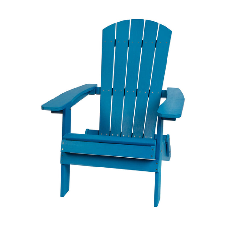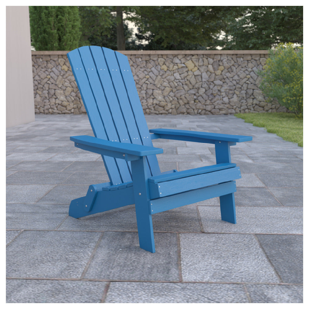 This folding Adirondack chair features a weather-resistant poly resin construction capable of supporting 350 lb. weight capacity, providing long-term durability for commercial outdoor use. Its lightweight yet sturdy frame simplifies handling, enabling quick setup and breakdown in hospitality or outdoor event workflows. Designed for high-traffic environments, the chair's folding functionality enhances storage efficiency and ease of cleaning, while its vibrant blue finish ensures visual appeal in public outdoor spaces. Perfect for outdoor dining, patio seating, and outdoor lounge areas requiring low maintenance heavy-duty furniture.