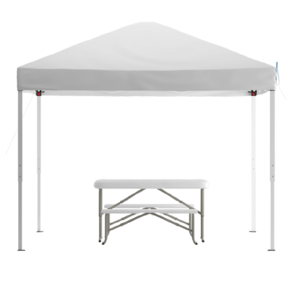 Flash Furniture JJ-GZ10103-WH-GG 10 Inch Canopy Tent and Folding Bench Set White - 1/Set