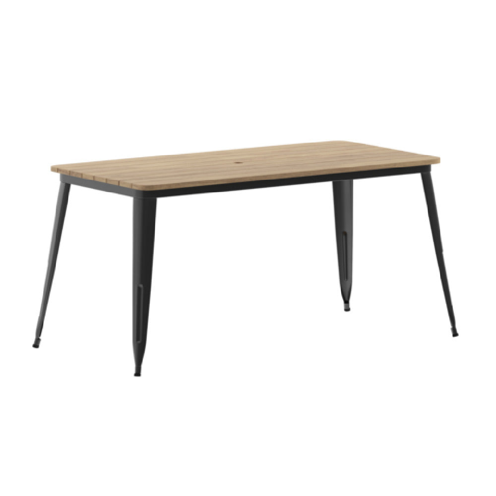 Flash Furniture, JJ-T146120-BRBK-GG, Declan Dining Table, 60"W x 30"D x 30"H rectangular table, holds 500 lbs weight capacity, with umbrella hole, poly resin table top, powder coated steel frame, stainless steel hardware, adjustable floor glides, for indoor/outdoor use, brown/black