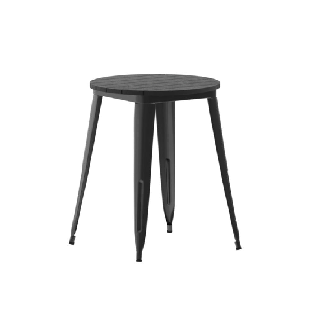 Flash Furniture, JJ-T14623-60-BKBK-GG, Declan Dining Table, 23-3/4" dia. x 30"H round table, 200 lbs weight capacity, poly resin table top, powder coated steel frame, stainless steel hardware, adjustable floor glides, for indoor/outdoor use, black