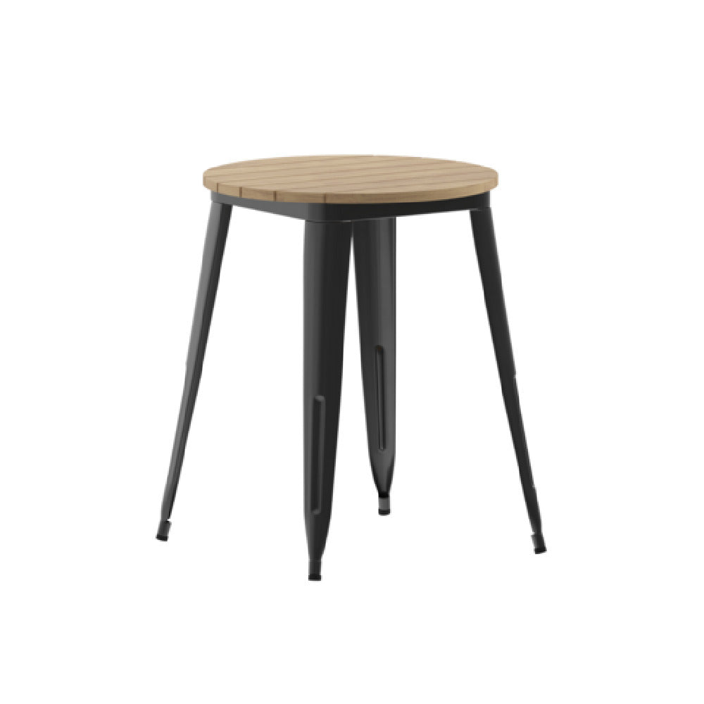 This outdoor dining table offers a poly resin top combined with a powder-coated steel frame, optimized for durable outdoor applications in commercial foodservice settings. Its 23-3/4" diameter and 30" height promote versatile seating arrangements, while stainless steel hardware ensures longevity in harsh environments. The adjustable floor glides simplify installation on uneven floors, facilitating quick setup and maintenance, ideal for hospitality or outdoor café tables requiring stable, weather-resistant surfaces.