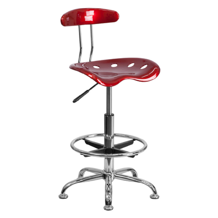 The Flash Furniture LF-215-WINERED-GG Swivel Drafting Stool is a professional-grade work stool designed for versatile use in commercial and residential environments. Crafted with high-density polymer construction, it features an adjustable pneumatic height mechanism capable of extending 8-1/2", ensuring ergonomic positioning for users during prolonged tasks. The contemporary style is complemented by a vibrant wine red finish, plastic back support, and a molded tractor seat, making it suitable for dynamic workspaces such as design studios, drafting areas, or back-of-house restaurant setups. The chrome foot ring and heavy-duty chrome base contribute to stability and durability, supporting daily use in high-traffic settings with ease. This model is tailored for environments requiring flexible seating solutions with precise height customization and robust materials for long-lasting performance.