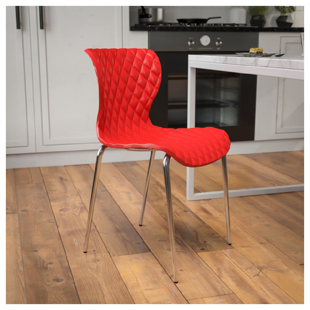 Flash Furniture LF-7-07C-RED-GG 17 Inch Stacking Chair Plastic Red Chrome Finish