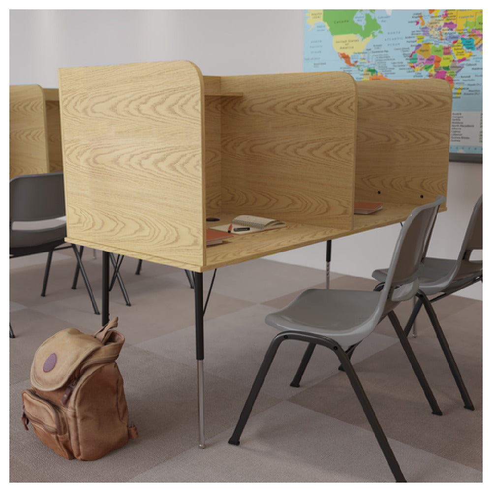 The Flash Furniture MT-M6222-DBLSC-OAK-GG is a commercial-grade double study carrel built with a sturdy oak finish, supporting user comfort through height adjustment and organized workspace design. It is well-suited for educational testing facilities, training rooms, or research stations requiring reliable, ergonomic individual workstations with enhanced durability and organizational features.