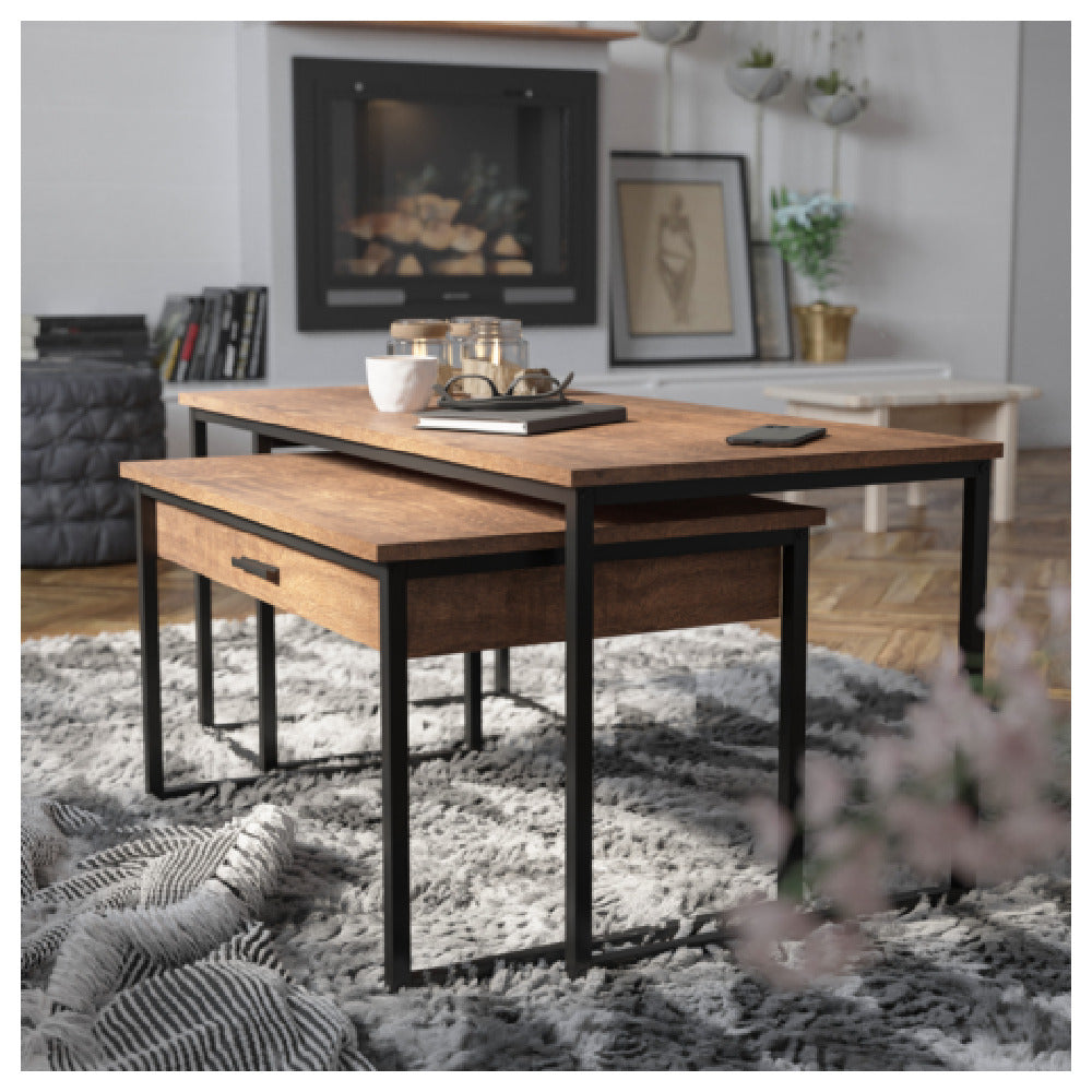 Compared to similar commercial coffee tables, this Flash Furniture set combines sturdy metal bases with a refined walnut veneer finish, offering enhanced stability, space efficiency, and easy maintenance. Its nesting feature allows versatile configuration, while the integrated storage drawer improves organizational capacity, supporting efficient workflow in high-traffic environments. The design's durability and practical features make it well-suited for contemporary hospitality and lounge applications.