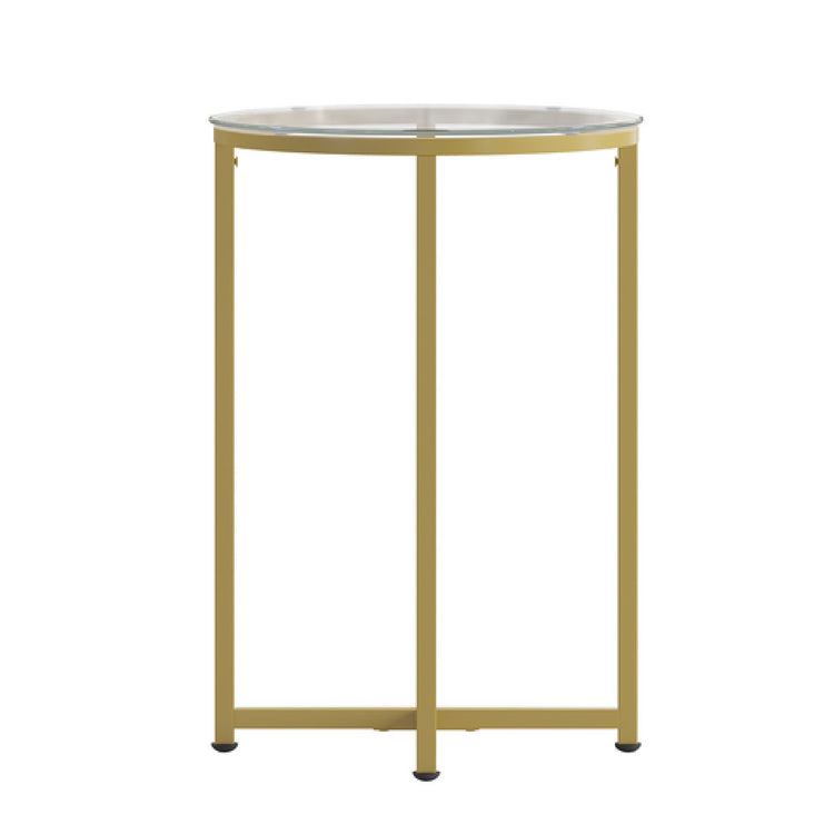 Flash Furniture NAN-JH-1786ET-GG 16 Inch Round End Table Clear Glass Matte Gold Finish