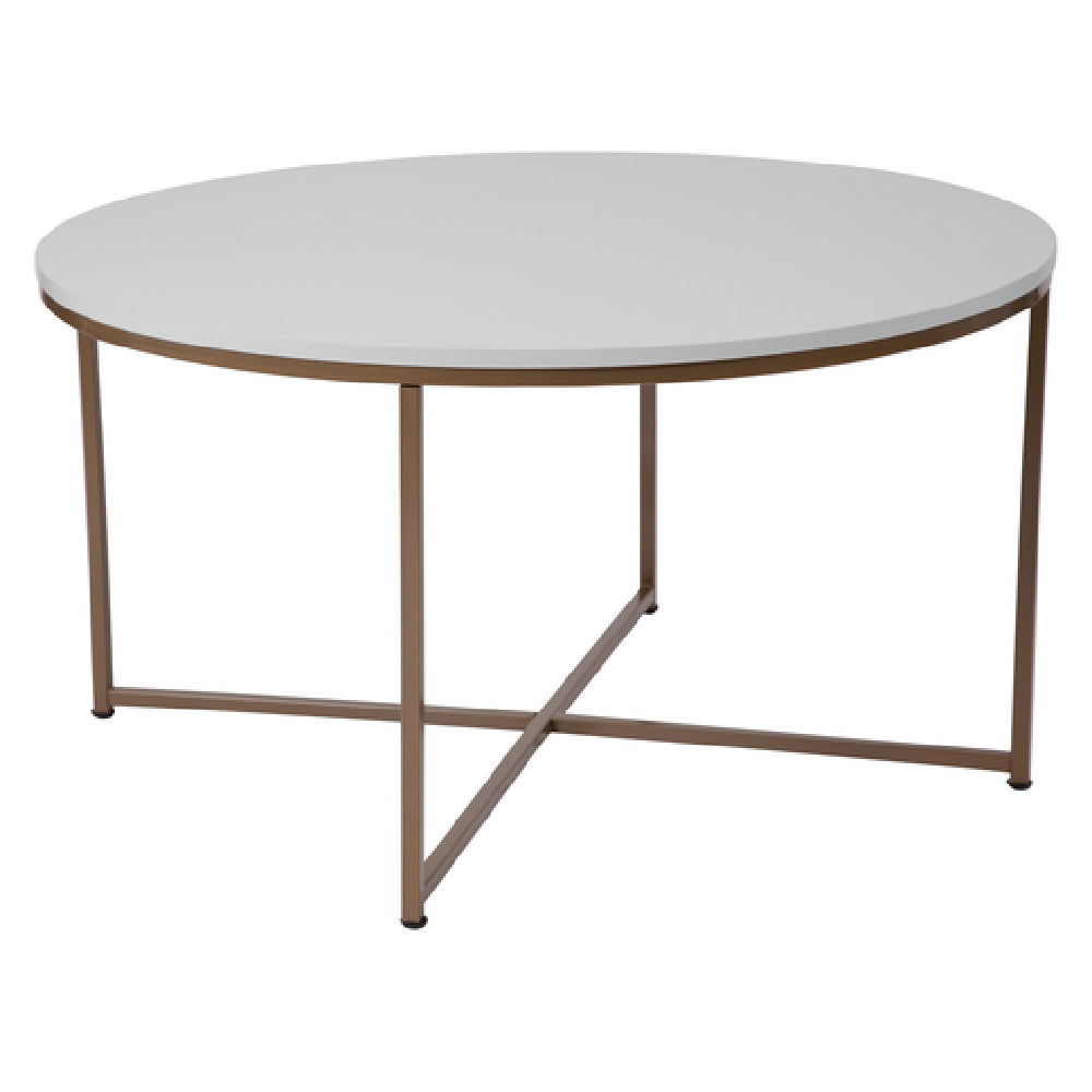 Flash Furniture NAN-JH-1787CT-GG 35-1/2 Inch Round Coffee Table White Laminate Matte Gold Frame