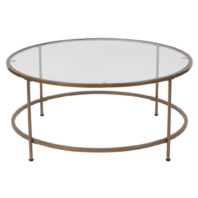 Flash Furniture NAN-JN-21750CT-GG 35-1/4 Inch Round Coffee Table Glass Matte Gold Finish