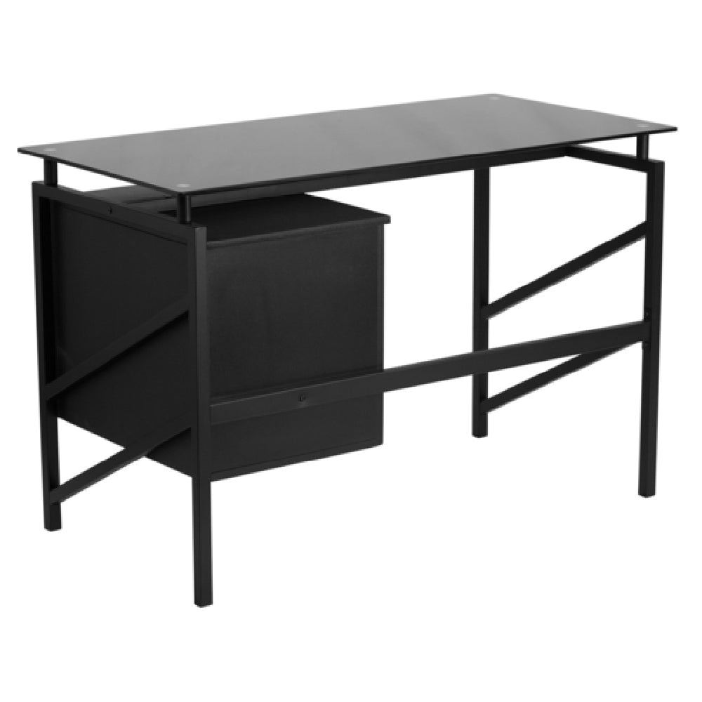 Flash Furniture NAN-WK-036-GG 46 Inch Computer Desk Tempered Glass Top Black Metal Frame
